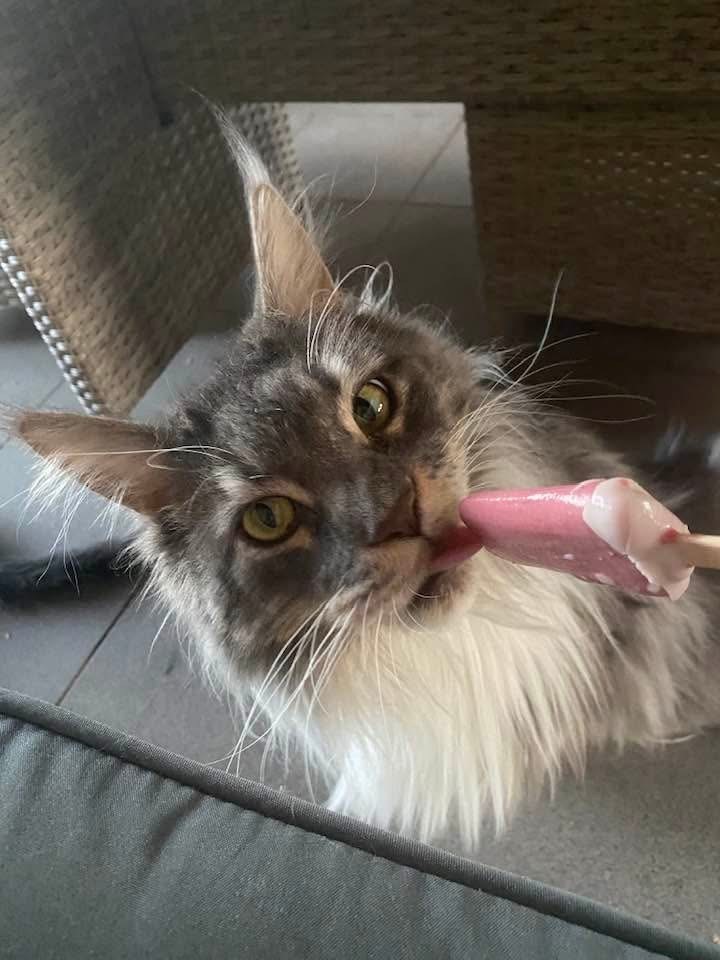 Tyčinka was a healthy cat. When she was around 1 year old, she was with a male for a mating. Unfortunately he bited her very unlucky way to her ass and tail. Infection left her paralyzed even we tried so much to save her legs. At least we saved her life. Thats the most precious one anyway. We try to make her life full of happiness and we redone our home a bit for her smooth moving. She is pooping by herself, Im peeing her manually twice a day on a pad. Tycinka loves young Dutch gouda and ice creams.